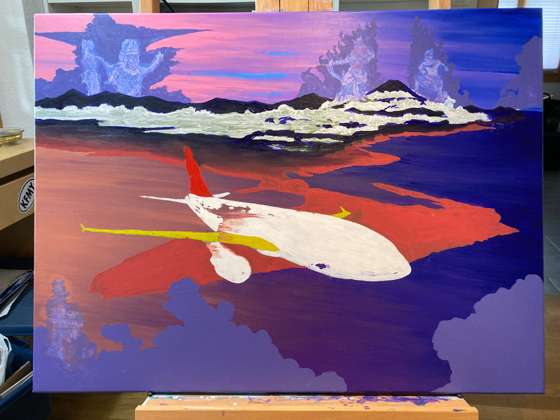Das Gemälde zeigt die damalige Balair (hat nichts mit Bali zu tun, es war vielmehr eine erfolgreiche Schweizer Fluggesellschaft, die zwischen 1925 und 2001 weltweit operierte). Der Entstehungsprozess: Als nicht sehr erfahrener Künstler hatte ich ziemliche Probleme mit den Farben und dem Mischen. Ganz zu schweigen von den Kompositionsprinzipien, die mir eher fremd waren... was man auch sehen kann. Es wurde von der Atelier- und Kunstgalerie Hodler in Thun, Schweiz, gerahmt und hängt nun in unserem Wohnzimmer. Wir lieben es. Das Bild zeigt verschiedene wichtige Gottheiten des balinesischen Ramayana: Gajah Mina unten links (Fischelefant), der für die Menschen die Bedeutung der Verbindung zwischen den Bergen und dem Meer darstellt, die, wenn diese Verbindung richtig respektiert wird, Segen und Wohlstand für die Menschen prophezeit. Der Gott ist vor der Südwestküste Balis vor dem Tempel von Uluwatu dargestellt. Oben links ist Prinzessin Sita, die vom „Bösen“ entführt wurde, dargestellt als König Rava. Oben rechts „die Guten“: Prinz Rama und der Affengeneral Hanuman, der Rama half, Sita zu befreien (sehr kurze Erklärung...) Story: The painting shows the then Balair (has nothing to do with Bali, was rather a successful Swiss airline which operated worldwide between 1925 and 2001). The creation process: As a not very experienced artist I struggled quite a bit with the colors and the mixing. Not to speak of the principles of composition, which were rather foreign to me... which you can also see. It was framed by the Hodler studio and art gallery in Thun, Switzerland and now hangs in our living room. We love it. The image shows various important deities of the Balinese Ramayana: Gajah mina bottom left (fish elephant), which represents for the people the importance of the connection between the mountains and the sea, which, if this connection is respected properly, is said to be a blessing for the human and should mean prosperity. The god is depicted off the south-west coast of Bali, in front of the temple of Uluwatu. At the top left is Princess Sita, who was kidnapped by "evil", represented as King Rava. Top right "the good guys": Prince Rama and the monkey general Hanuman who helped Rama to free Sita (very short explanation...) |